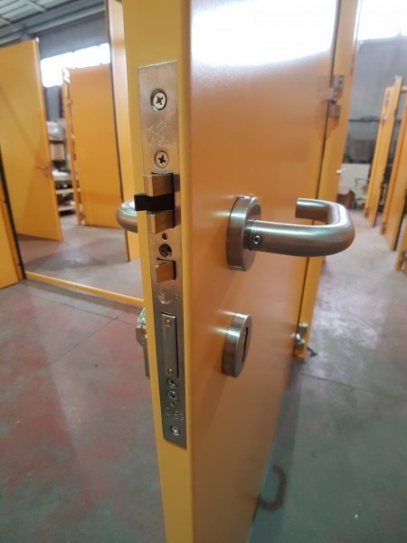 - Lock on the secondary leaf for self-locking, with internal opening lever,readied for installation of a safety lock for the panic handle;